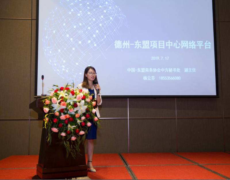中国东盟商务协会中方秘书处副主任杨立芬女士介绍德州-东盟项目中心网络平台